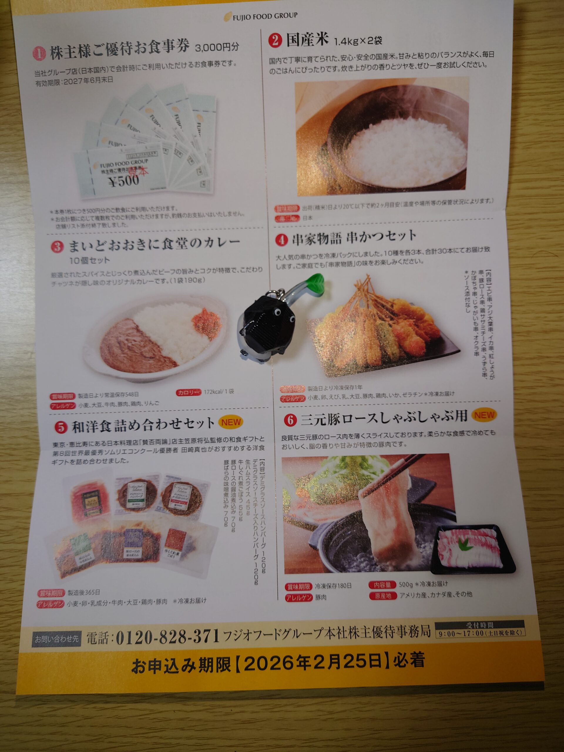 フジオフード本社(証券コード2752)から株主優待が届きましたので、本ブログで優待情報や株価を紹介します