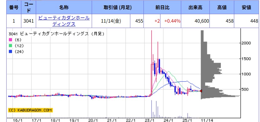ビューティーカダン株情報